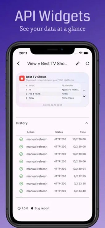 API Widgets działa z każdym API JSON, pozwalając Ci wyświetlać informacje za pomocą tabel, wykresów kołowych i wykresów słupkowych. Odświeżanie w tle zapewnia, że dane pozostają aktualne bez konieczności ich otwierania. Ponieważ łączy się bezpośrednio z punktami końcowymi bez użycia serwerów zewnętrznych, chroni Twoje prywatne informacje na Twoim urządzeniu.